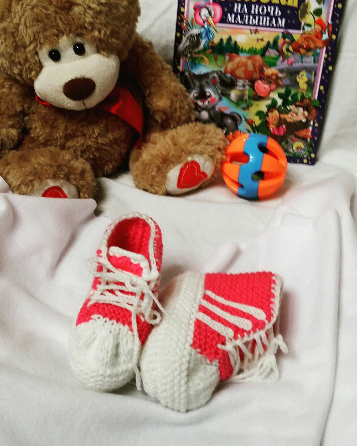 Пинетки выполнены из гипоаллергенной пряжи.
